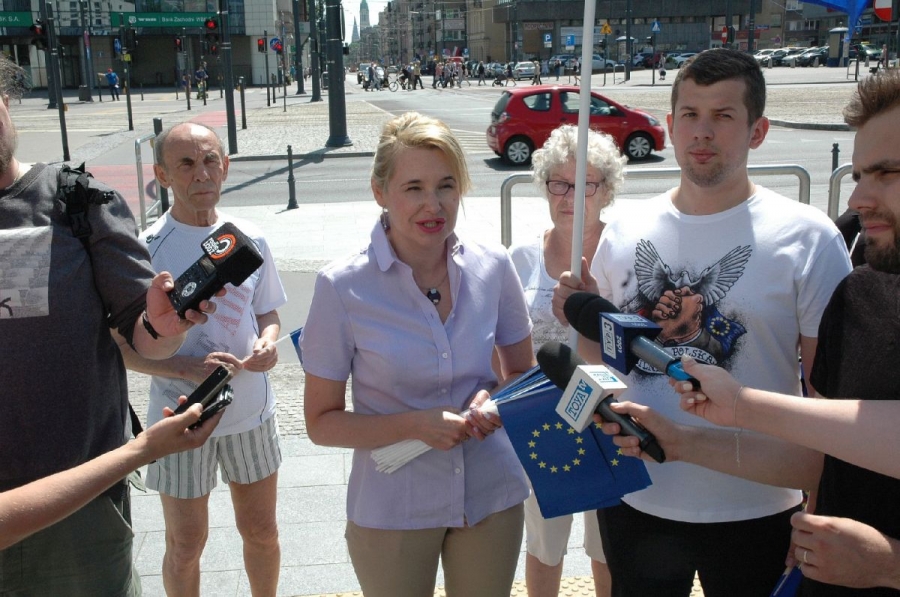 Politycy i działacze łódzkiego SLD nie zapomnieli o Dniu Unii Europejskiej. Wspólnie z przedstawicielami Nowoczestnej rozdawali mieszkańcom Łodzi flagi unijne.